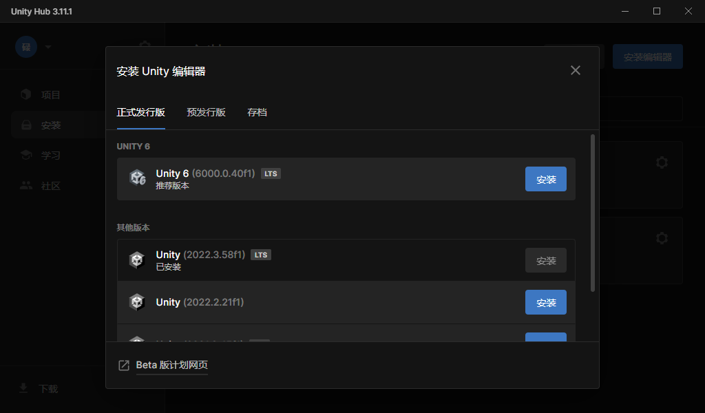 下载安装国际版 Unity Hub